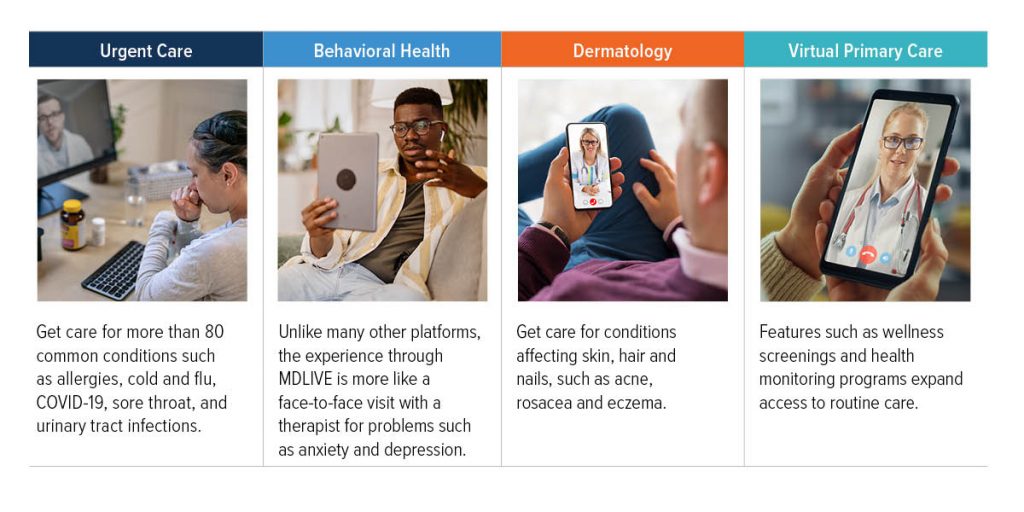 - Access Blue CareOnDemand powered by MDLIVE through My Health Toolkit.